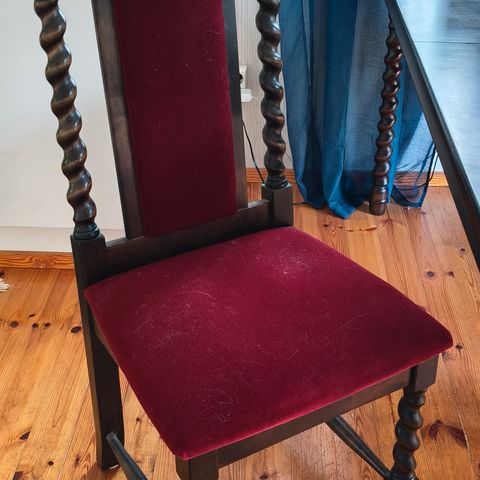 Puinen jugend tyylinen ruokailuryhmä ja 8kpl tuoleja. Käytön jälkiä löytyy (katso kuva), mutta muuten kunnoltaan oikein hyvä. Tuoleissa on beige verhoilu.