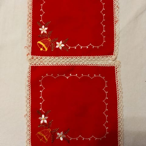 Punaisia jouluisia liinoja.