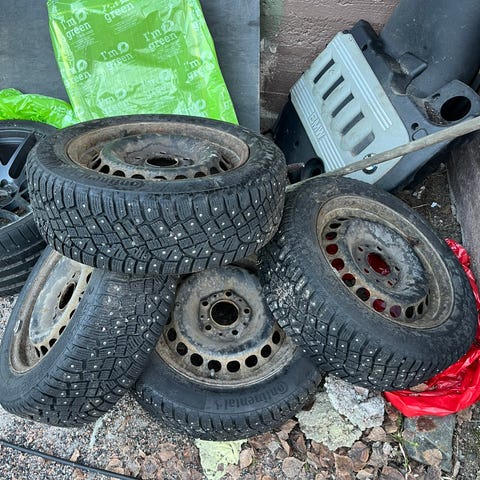 Peltivanteet nastoilla. Kumit useamman vuoden vanhat.