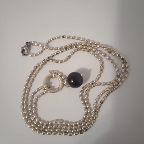 Käyttämätön, hopeinen kaulakoru.