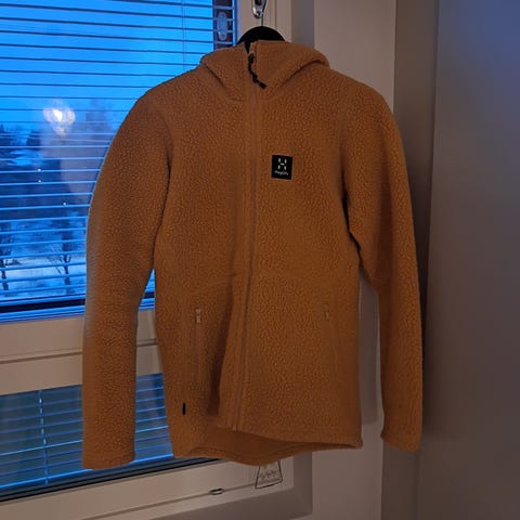 Myydään luonnonvalkoinen Hagflösin fleece, jota on käytetty vain muutaman kerran. Koko on (naisten) M.