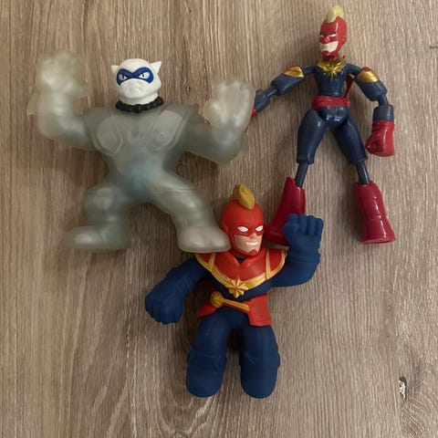 Marvel Thanos ja Hulk ovat noin 30 cm korkeat toimintahahmot, valmistettu muovista. Hahmot kuvaavat Marvelin sarjakuvahahmoja ja soveltuvat lasten leikkeihin. Yhteensä 10 euroa. Nouto Karhunmäestä.