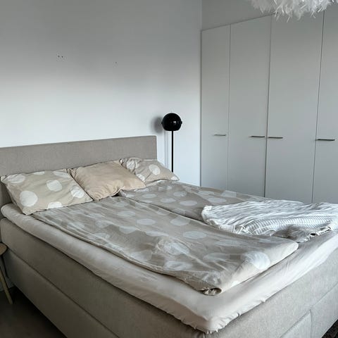 Sänky hyvässä kunnossa. Ei lemmikkejä taloudessa, käytetty patjansuojusta.