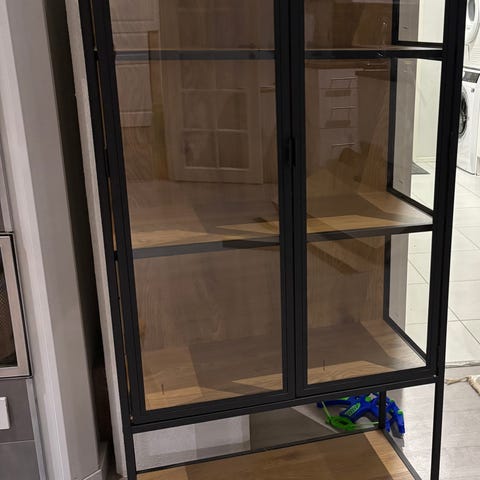 Yläosa vitriinikaappi ja alaosa lipasto kaappi.