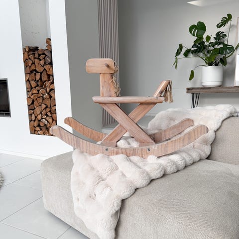 Hauska vetolelu lapselle. Puinen hevonen ja kärry.