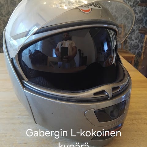 Italialainen Caberg kypärä moottoripyöräkäyttöön, koko M, väriltään musta, valkoinen ja harmaa. Kypärässä on selkeä kuviollinen ulkopinta ja kirkas ulko visiiri, sekä aurinkovisiiri. Sisävuori on pehmeä ja hengittävä, tarkoitettu suojaamaan ja lisäämään käyttömukavuutta. Soveltuu moottoripyöräilijöille, jotka tarvitsevat suojaa ja näkyvyyttä ajon aikana. Ei kolaroitu, ei lemmikkejä. Reilu 10 vuotta seissyt hyllyssä sisätiloissa. https://www.caberg.it/en/
