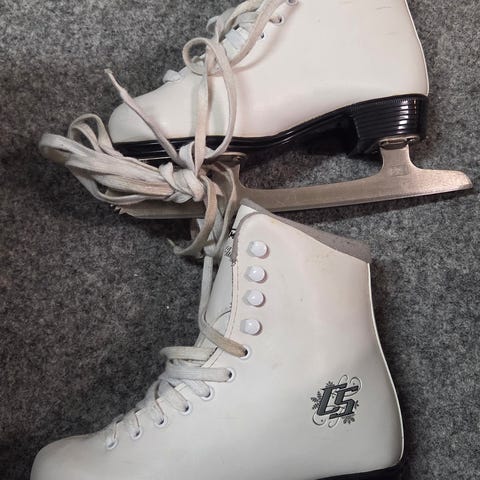 CCM Lasten luistimet, koko 6, ehkä 36 kokoiselle parhaat. Väri valkoinen. Luistimissa on nauhakiinnitys ja lisäkiinnitys remmillä nilkan kohdalla. Vähän kulumaa ja naarmujälkeä kärjissä mutta vielä passelit seuraavalle liikkujalle.