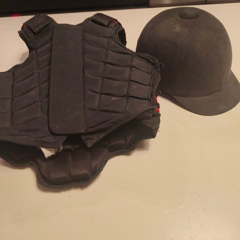 Ratsastuskypärä ja palasuojaliivi