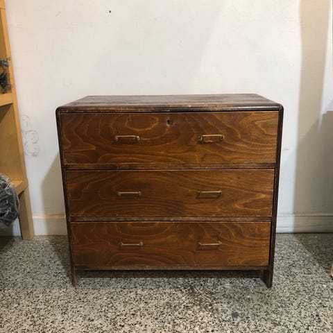 Vanha lipasto avattavalla kirjoitus alustalla.