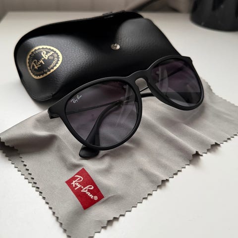 Ray-Ban Boyfriend RB4147 601/32 aurinkolasit kotelolla. Linssit erinomaisessa kunnossa, ei naarmuja. Sangoissa linssien välissä pientä jälkeä.