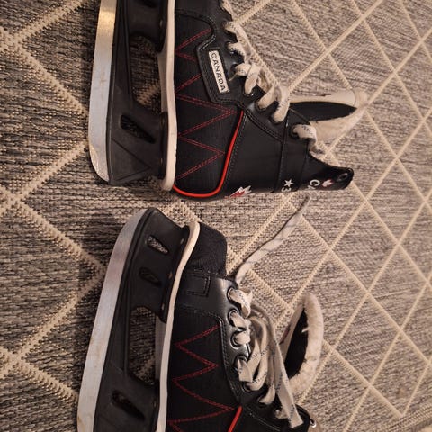 Pientä kulumaa luistinten kärjessä, vaatii teroituksen.