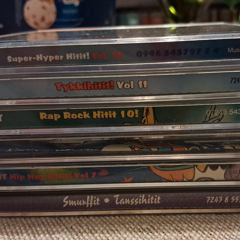 Todella paljon alkuperäisissä kansissa olevia CD (musiikki) ja DVD (elokuva) levyjä. Suurinosa hyväkuntoisia, osa uuttavastaavia. Dvd valikoimasta kuvia vähän myöhemmin, kun saan ne järjestykseen joskus... Joten kysy, jos joku tietty leffa mielessä, niin muistan onko sitä vai ei. Paljon Lastenelokuvia! Mm: Cars, Timon&Bumpa, Lego, Rölli, Risto Räppääjä, Ice Age (kaikki), Toy Story (kaikki), Frozen, My Little Pony, Smurffit musalevyjä, elokuvia ynms. ynms.
