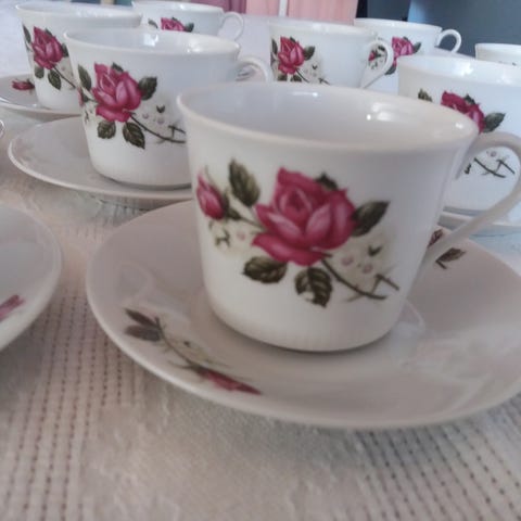 Rubiininpunainen lasikahvikuppi-setti