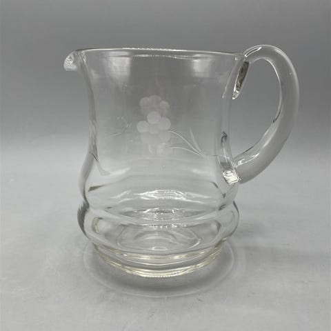 Kaunis lasikannu, jossa koristeena kuin vesipisaroita. Toimii myös kukkamaljakkona. Korkeus 20 cm ja halkaisija 10 cm.