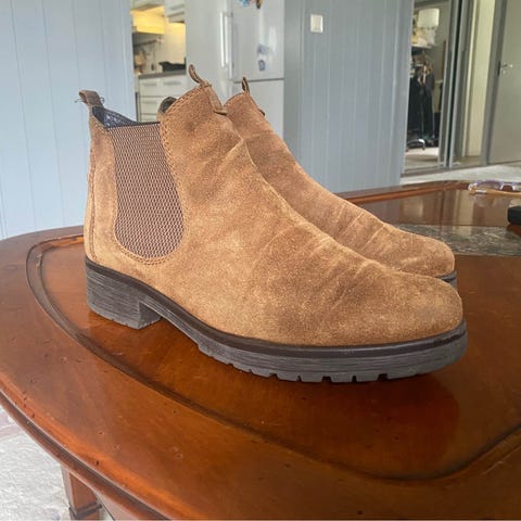 Laadukkaat Gabor talvinilkkurit mokkaa. Erittäin hyvin istuvat. Koko 7,5 vastaa 41. Helppokäyttöiset, vetoketjut sivulla. Koristenastat nahkaremmeillä 3 kpl. Korkoa 6,5-7 cm. Kauniit, sirot, monikäyttöiset, sopivat sekä juhlahameen että housujen kanssa. Kevyt nukkavuori. Käytössä pieniä jälkiä mokkapinnassa, muutoin kuin uudet.