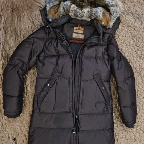 Myytävänä Parajumpersin musta Long Bear -untuvatakki kokoa L. Kuvissa 172 cm henkilön päällä