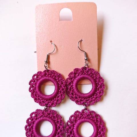 Fuksian väriset uudet virkatut korvakorut