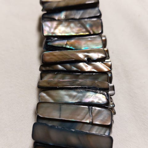 Valkoisista "helmistä" tehty rannerengas. Rannekorun pituus n. 50 cm. Kiertyy ranteen ympäri vaijerin avulla.