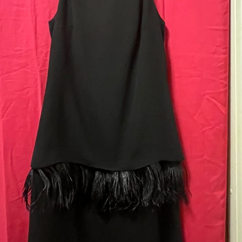 Hieno pikkumusta coctailmekko. Irrotettava vyö jossa kaksi pituus vaihtoehtoa. Sivussa vetoketju ja niskassa nappi. Hyväkuntoinen ja siisti vaate.