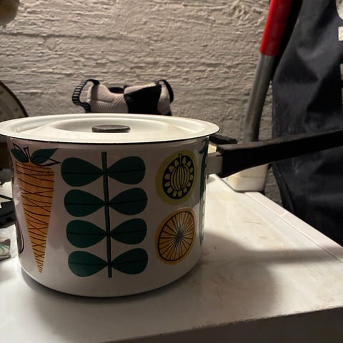Finelin valmistama hyväkuntoinen Vegeta kattila, vetoisuus 3 litraa. Korkeus 13 cm ja halkaisija 20 cm. Suunnittelija Esteri Tomula. Voin postittaa, postitusmaksu on 10 euroa