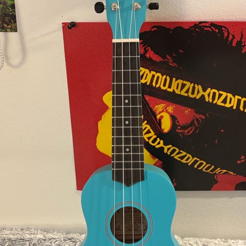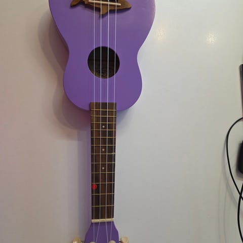 Ukulele + viritin. Ukulele plektran yritän löytää tohon päälle vielä.