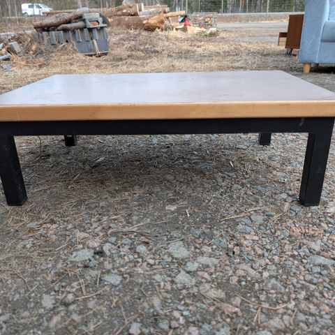 Kaksiosainen pöytä, jossa tasot ovat massiivista puuta ja harmaa metallirunko. Pöydän korkeus on säädettävissä . Sopii työpöydäksi tai tietokonepöydäksi.