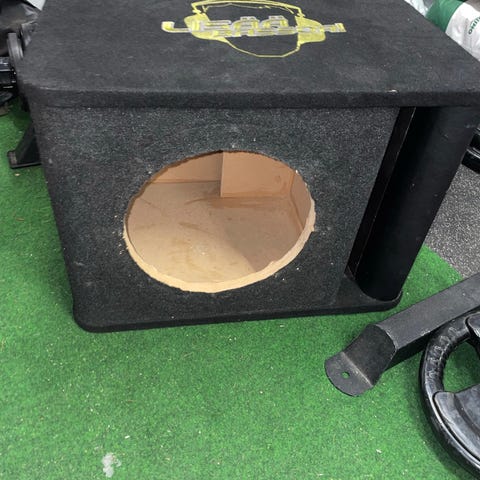 Tästä jykevä subbari takakonttiin, reilun paiksut johdot ja todella vahva vahvistin, vahvistimessa 1500W RMS@1ohm. Vahvistin on jykevä subbarille joten kannattaa olla varovainen ettei posauta sitä liiallisella teholla. Kuluman jälkiä on, varsinkin suossa subbarissa, vahvistimessa naarmuja ja tahroja. Johtojen mukana in-line sulake. Mukana pitkä RCA johto. Subbari Autostudio T-series.