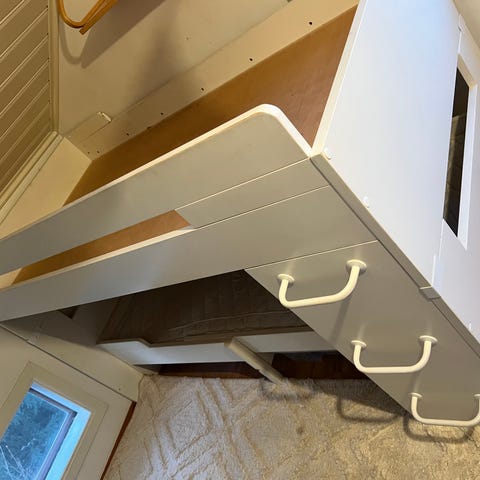 Muurame Jungemanni on klassikko, joka kestää. Sänky on valmistettu 22mm kalustelevystä ja pohjat ovat koivuvaneria. Kaikki osat ovat ruuveilla kiinni toisissaan, joten sänky on hyvin tukeva. Tarvittaessa tästä kokonaisuudesta saa kaksi erillistä matalaa sänkyä. Tätä voi myös täydentää, esim sängyn alle tulevalla varavuoteella. Kasaaminen toisen kätiseksi näillä osilla on myös mahdollista.