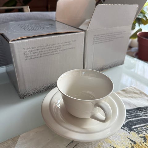 Myydään 6 ehjää Arabian Tuuli kuppia, joiden kupin halkaisija on 10cm. Kupeissa on lautaset. Mukaan saa halutessaan yhden kupin, jonka reunasta pala lohjennut. Kaikki yhteensä 55e.