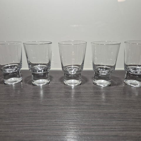 Snapsilasi 3 kpl: korkeus 8,2 cm, halkaisija 5,3 cm, hinta a 12 e tai yhteensä 30 e.