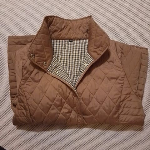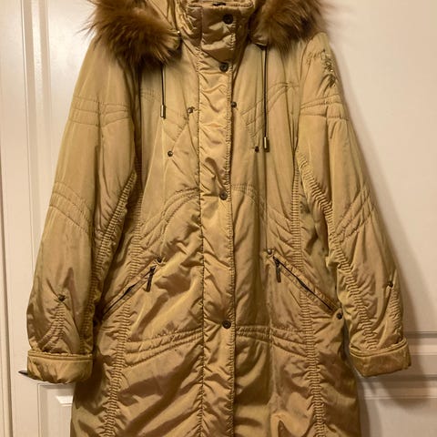 Tummanharmaa, hieman " kiiltävä " toppatakki.