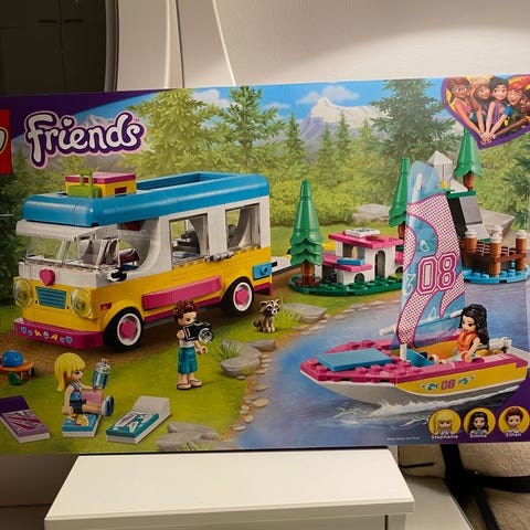 Lego Freinds matka-auto setissä on mukana teltta, vene, retkipöytä, kaksi hahmoa ja välipalaa muun muassa. Matka-auto aukeaa takaa sivusta, yllä olevan makuuhoneen päällä olevat lasit aukeavat ylöspäin, sivussa olevaa verhoa saa liikutettua autoon-tai ulos päin, veneen saa kiinnitettyä matka-auton katolle.