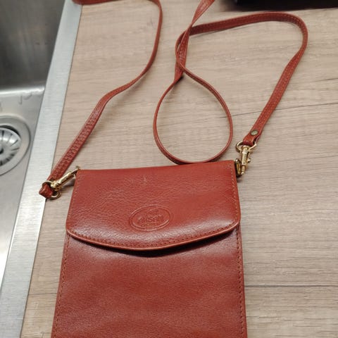 Lompakko - laukku Nahkainen / osaksi ,olkahihnan saa irti voi käyttää lompakkona 16x12 siisti ei käytön jälkeä