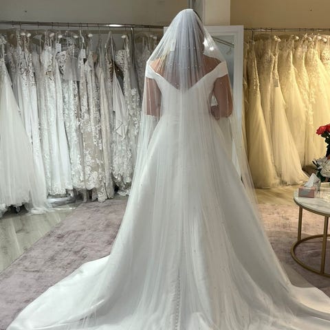 Myydään klassinen valkoinen hääpuku, koko 40. Puvussa on pitkä helma ja laahus, pitkät hihat, venepääntie sekä taskut. Ihanat nappirivit takana ja hihoissa. Puku on ostettu 2024 Niinattaresta, käytetty yksissä häissä ja pesetetty juhlan jälkeen Niinattaressa. Laahuksen vuorikankaaseen jäi pientä tahraa, joka ei kuitenkaan käyttöön vaikuta. Pukuun on teetetty muutoksia Oulun ompelustudiossa, mm. lyhennetty helma, lisätty taakse pitsipeitteet ja laahuksen pidike sekä parannettu yläosan istuvuutta. Morsiamen pituus 160. Mekon yläosa on mukavan joustavaa kangasta, runsas helma kevyttä organzaa - mekko on oikein mukava päällä. Mukaan saa pukupussin ja vannehameen, joka on myös pesetetty.
