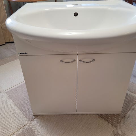 Käytöstä poistetut hyväkuntoiset käsienpesuallas ja peilikaappi