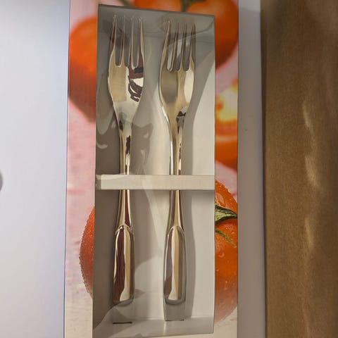 Myydään Savonian tarjoiluhaarukka ja -lusikka, ruostumatonta terästä.