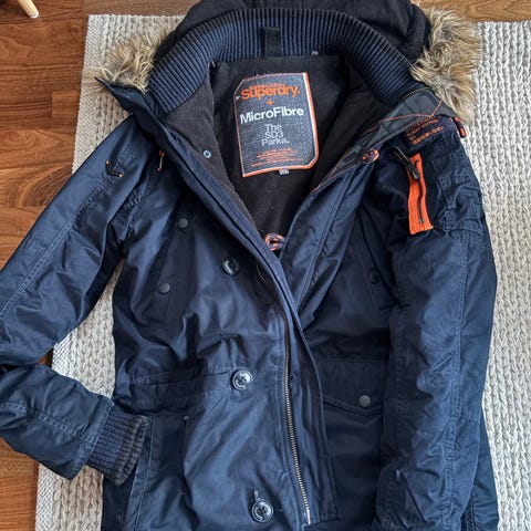 Superdry Arctic Parka takki, koko M, sininen väri. Takissa on irrotettava huppu, jossa tekoturkisreunus. Sisävuori on oranssi ja takki on suunniteltu ulkokäyttöön. Materiaali tarjoaa suojaa kylmiltä säiltä ja takissa on useita taskuja käytännöllisyyttä varten. Takki mahtuu noin 170-180cm pituiselle.