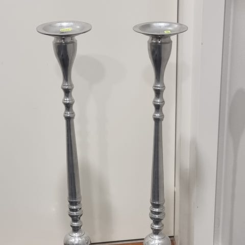 Kolme painavaa käsityönä valettua ja lämpökynttilöille tarkoitettua kynttilänjalkaa. Käsittelemätön pinta. Korkeudet 4 cm, 8 cm ja 12 cm. Litran maitopurkkeihin valettu eli lev. ja syv. sen mukainen. Myydään settinä hintaan 15€.