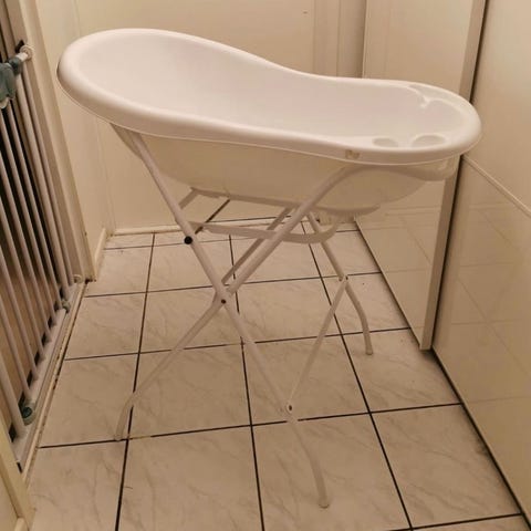Lasten kylpyamme valkoisella värillä. Kylpyamme on valmistettu kestävästä materiaalista ja soveltuu lapsille. Muotoilu on ergonominen lapsen mukavuuden takaamiseksi.