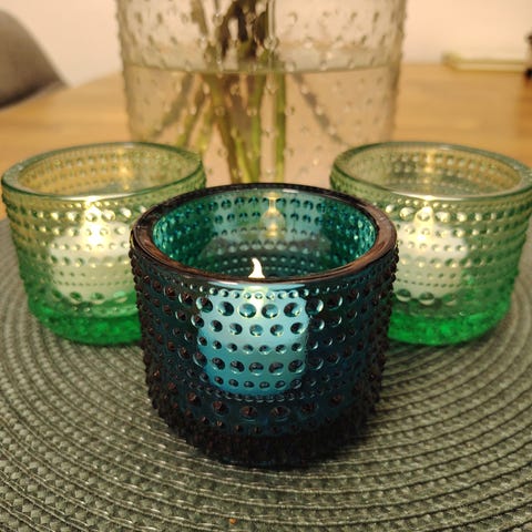 Iittala Kastehelmi Tuikkulyhdyt 3 kpl, lasi, vihreä ja sininen