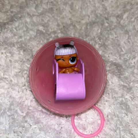 L.O.L. Surprise nukke, joka on pieni ja väriltään monivärinen. Sisältää pienen nuken ja lisävarusteita. Soveltuu lasten leluksi.