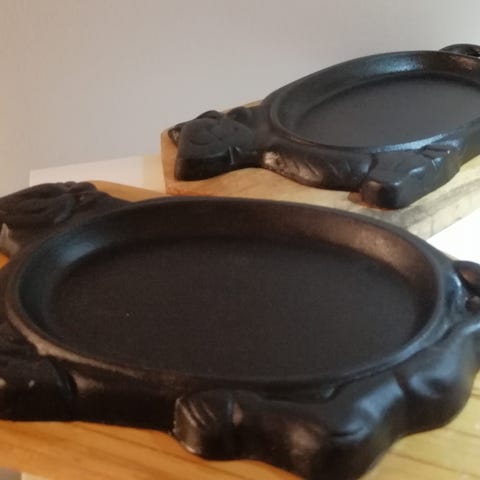 Valurautainen tarjoilupannu puualustalla 2 kpl