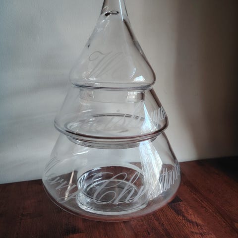 Lasinen koriste joulukuusi. Korkeus n. 25cm. Siisti ja ehjä. Vähän käytetty.