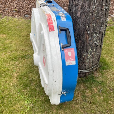 Käytetty pyöränkuljetuslaukku, jonne mahtuu ainakin maantie ja gravelpyörät. Jykevä laukku joka on ollut mukana pariin otteeseen ulkomaanreissuilla. Malli on nimeltään Bike Box Alan, mikä on yleinen merkki Britanniassa. Metalliosiin on tullut hieman ruostetta varastossa säilyttäessä, mutta ei siten että haittaisi käyttöä.