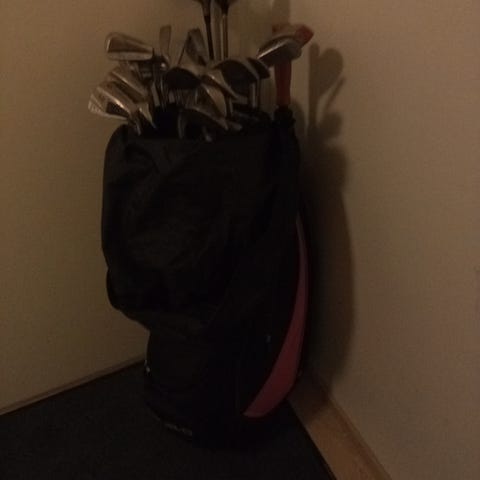 Myydään Golf-setti tarpeettomana. Laukku on huonokuntoinen ja mailoista en ymmärrä mitään. Osa näyttää kuluneilta ja osa ihan ok. Hommasin setin muutama vuosi sitten kaverilta, mutta koskaan en lajia aloittanut. Taskuissa on palloja ja useampi tii.