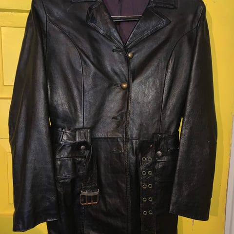 Myydään erittäin hyvässä kunnossa oleva kapealinjainen 70-luvun nahkatakki vyöllä. MMM. Voin postittaa. Ostaja maksaa postikulut.
