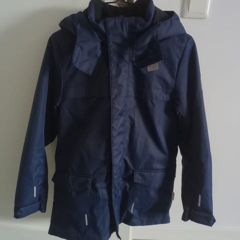 Heijastimia edessä hihoissa, takana hupussa ja alhaalla takin helmassa.