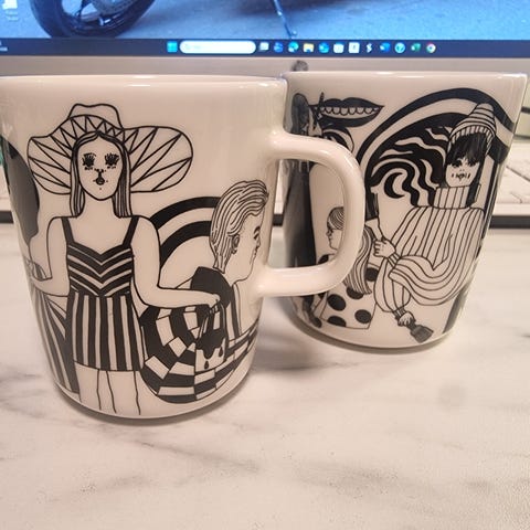 Eriträin hyväkuntoinen muki, Marimekko + Kiasma ”kimpassa”.