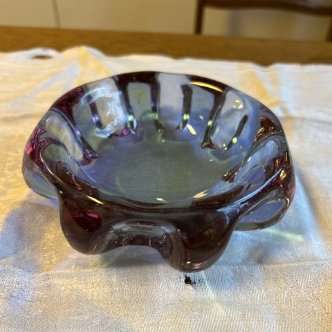 Vintage lasinen Malja. En uskaltaisi tätä yrittää toimittaa postitse. Se on niin painava, särkyvä esine ja vielä vanha.