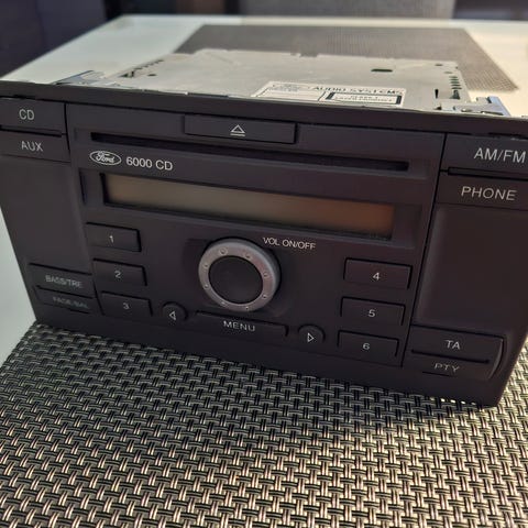 Fordin alkuperäinen CD-soitin. Soitin otettu talteen vm. 2004 focuksesta.